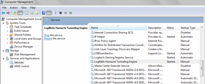 LogMeIn Hamachi Tunneling Engine, double click it and set
