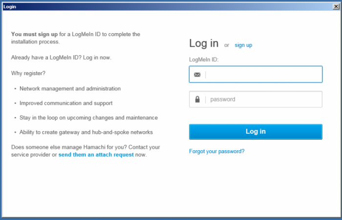 Now let's suppose your friend has created his own network with Hamachi. To join an existing network you just need to know its name and password. There is a limit of the number of participants in one network, so if there are no places left, you won't be able to join.