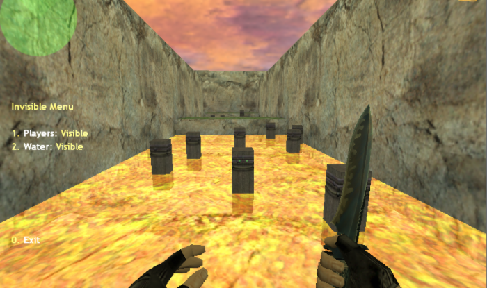 If you want to hide all other players from visibility zone, you can use /invis chat command. This function is available both on our servers and on KZ-Rush LAN server (which can be downloaded here). After writing /invis you will see a menu, where two options allow you to hide players and water (if map has any). Water means any liquid, for example it could be lava like on kz_kzfr_rabbithighway. Here we have it: