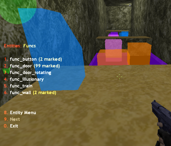 Sometimes you need to find specific objects (entities) - buttons, doors, breakables, teleports etc. For this purpose our LAN has a menu allowing to highlight different entities.