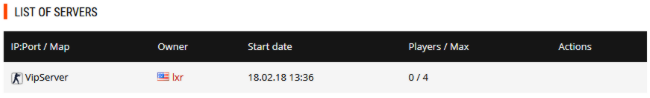 On this page you can see all running servers and their owners. This page is very convenient for playing together with your friends or teammates: