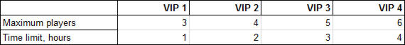 Maximum players and time limit of the server depends on your VIP level: