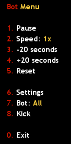 restart in console). Then open menu with /bot command and manage bot as you wish. If you suddenly want to delete all downloaded bots, you can find them in