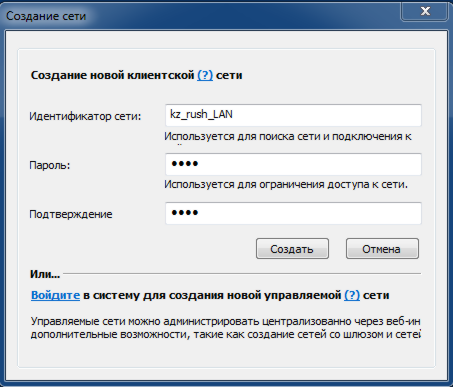 Здесь тоже ничего сложного, вводим любое название (возможно оно будет кем-то занято, не пугайтесь) и два раза пароль. Нажимаем кнопку Создать, и сеть готова. Я сообщил название сети и пароль двум друзьям, и они успешно подключились: