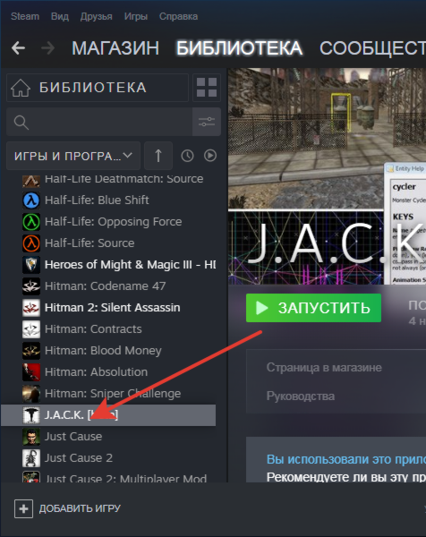 Для включения бета-версии вам необходимо зайти в Библиотеку Steam и выбрать в ней J.A.C.K.: